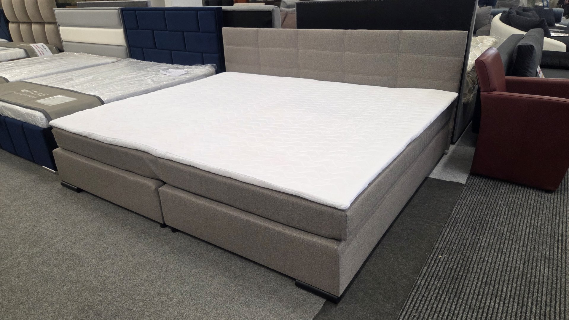 HATAMAS CSALÁDI ÁGY, 240CM SZÉLES FEKVŐFELÜLETTEL!Közeppes keménységű, hideghab matrac + fekdőmatracos boxspring ágy.