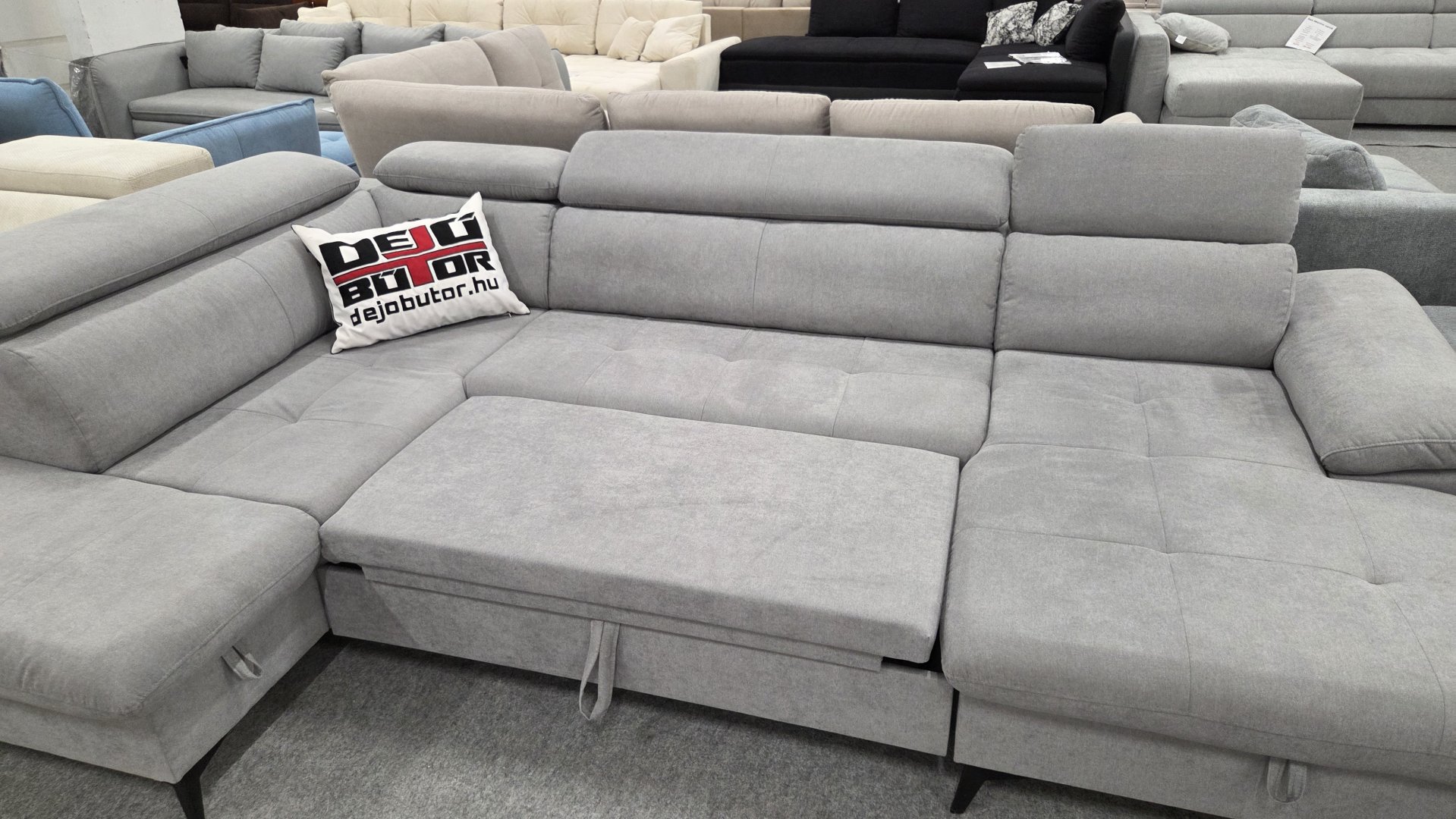 Kiváló minőségű német sarokkanapé, nagyon kényelemes, állítható fejtámlákkal, ágyazható, 2db ágyneműtartóval.