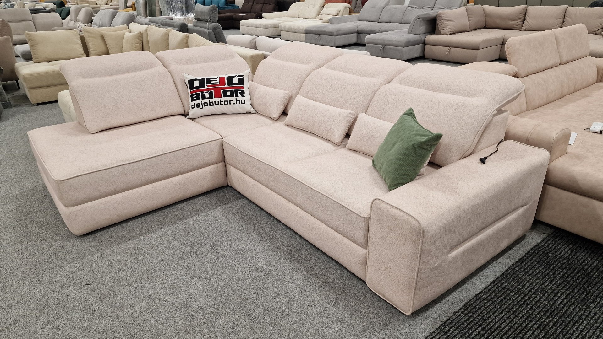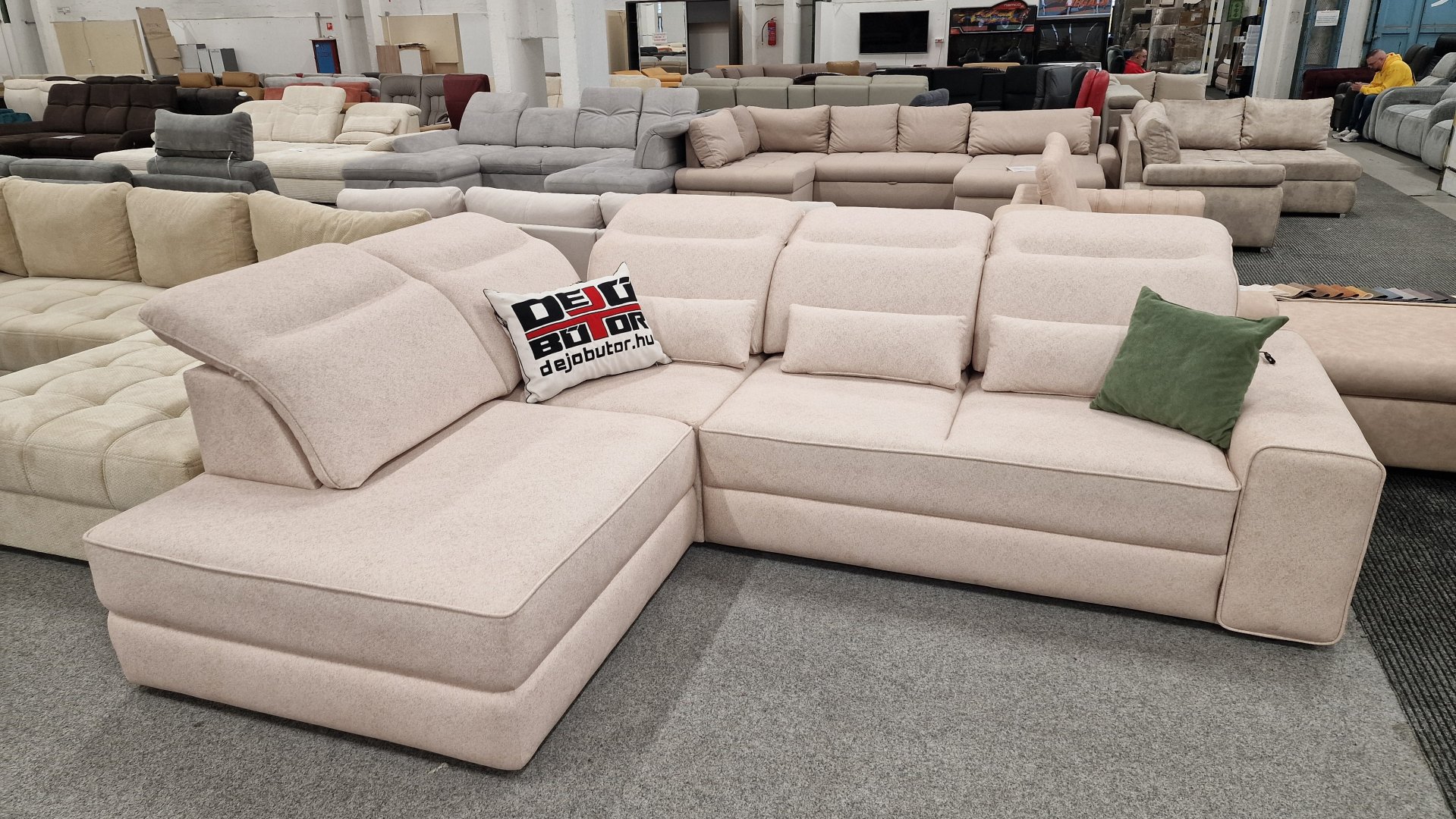 Szuperpuha, szuperkényelmes kanapé, állÍtható ülésmélységgel és fejámlákkal.