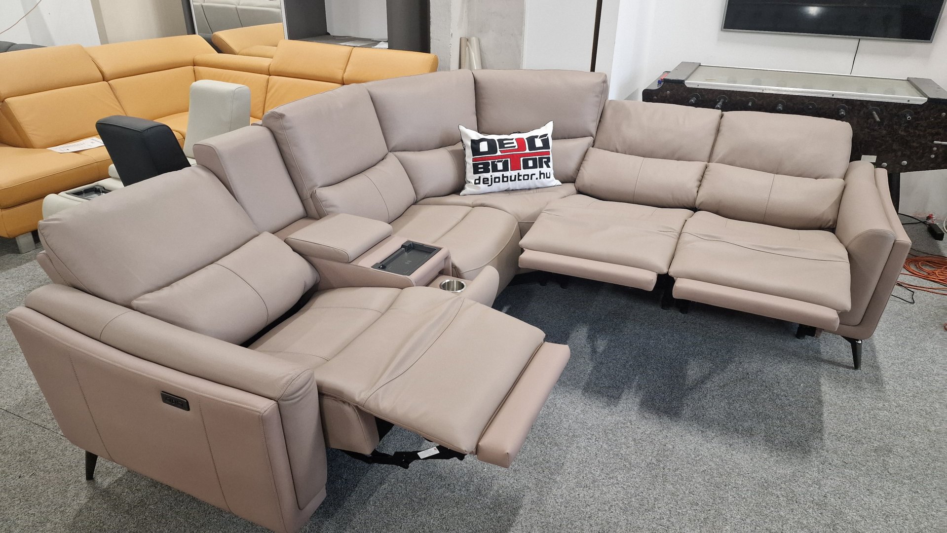 Extra kényelmes kitünő minőségű Valódi Bőr bútor. (az oldala és a háta textilbőr).Több féle méretben szerelhető össze. (az italtartó és az ülések átrakásával).