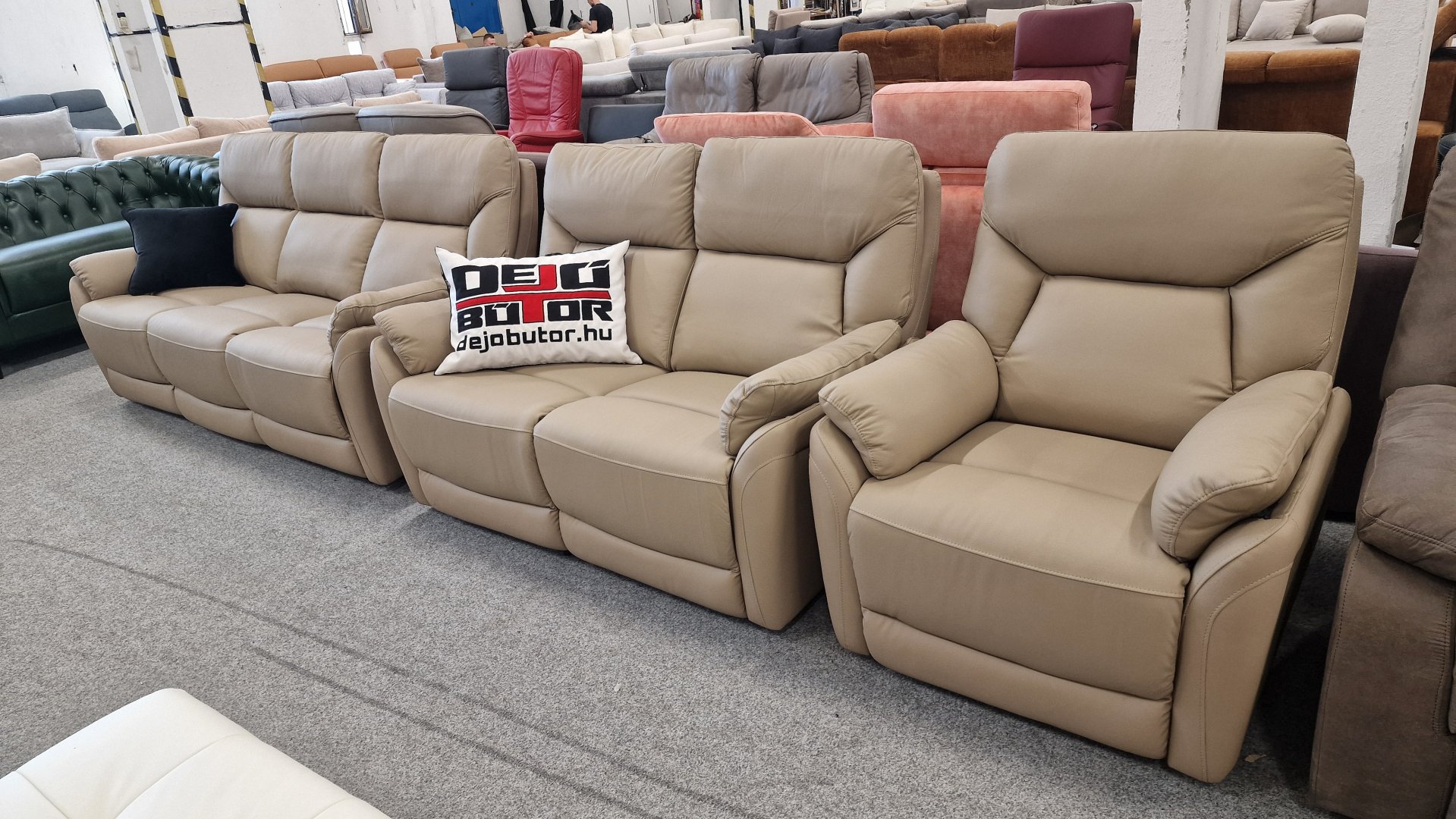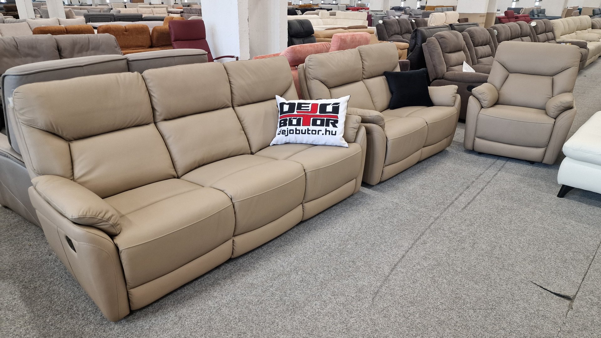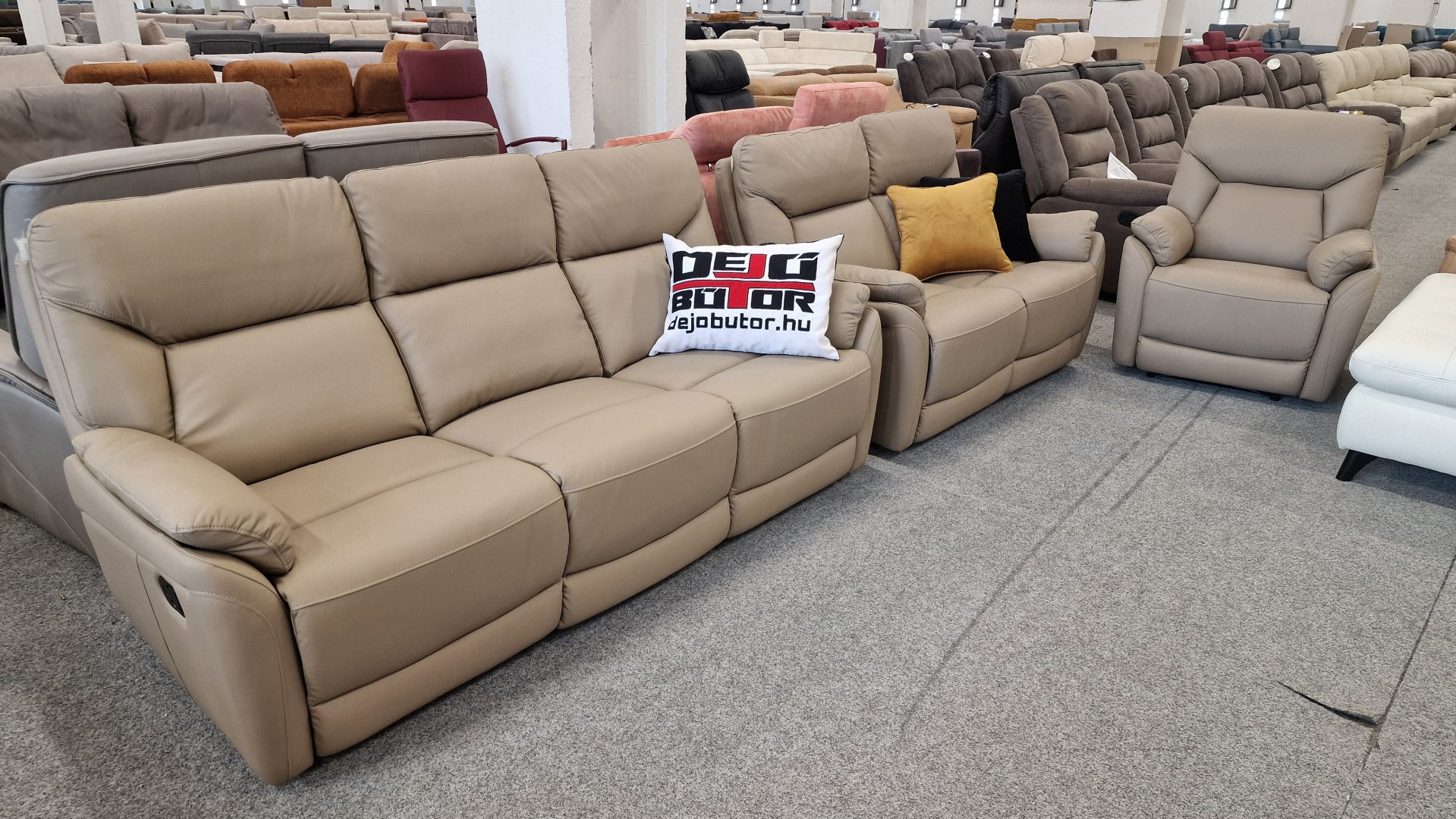 Valódi bőr (hátul és oldalt alul textilbőr) ülőgarnitúra 5 db TV relax funkcióval, CAPPUCINO, HALVÁNY SZÜRKE, VILÁGOS BEIGE színben. Extra kényelmes, SZUPERPUHA KANAPÉ!