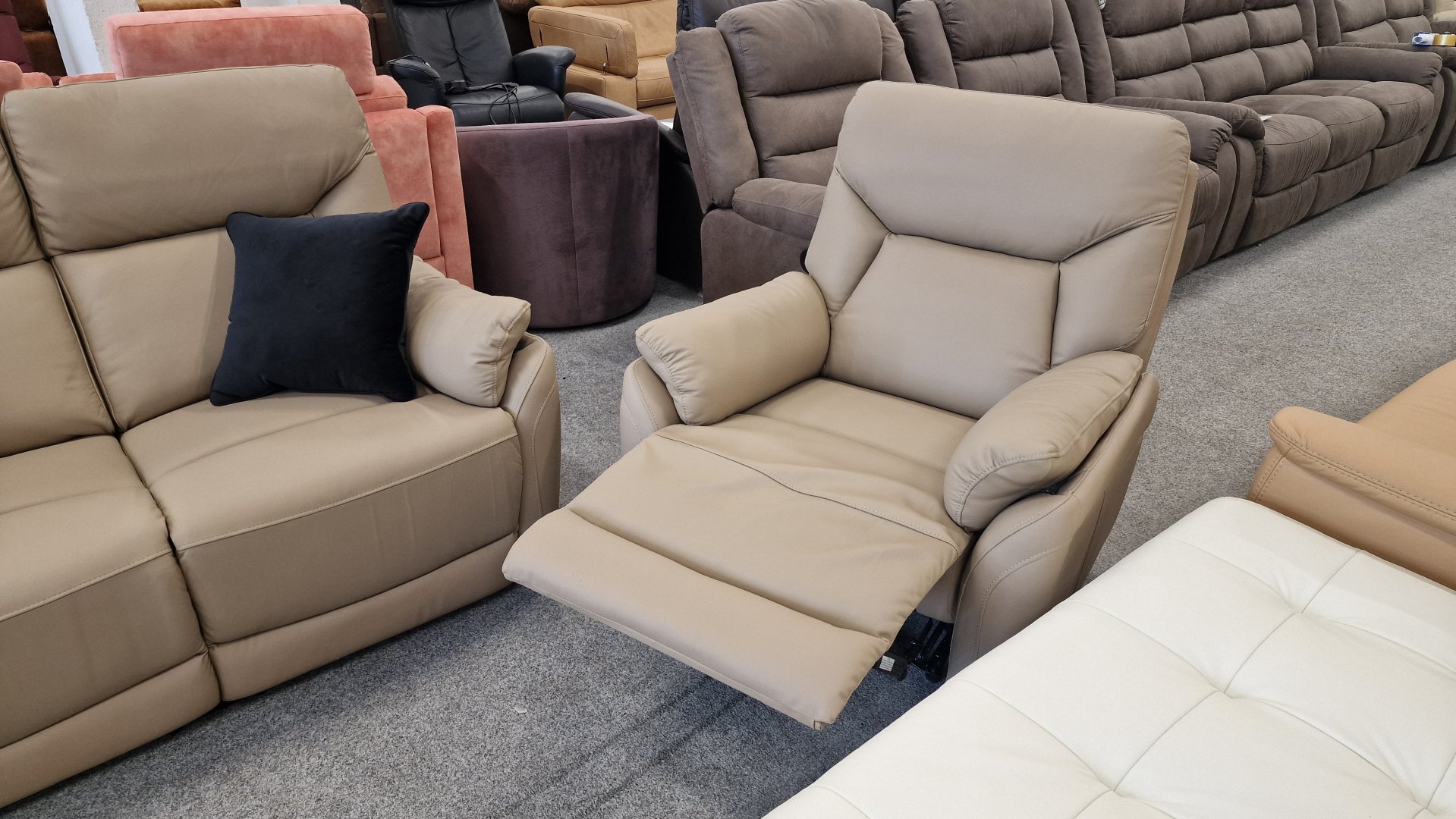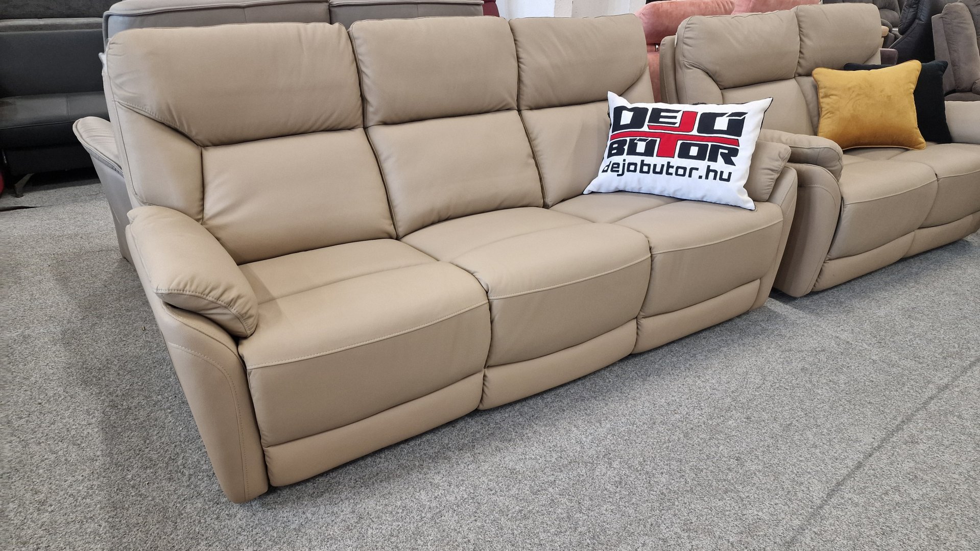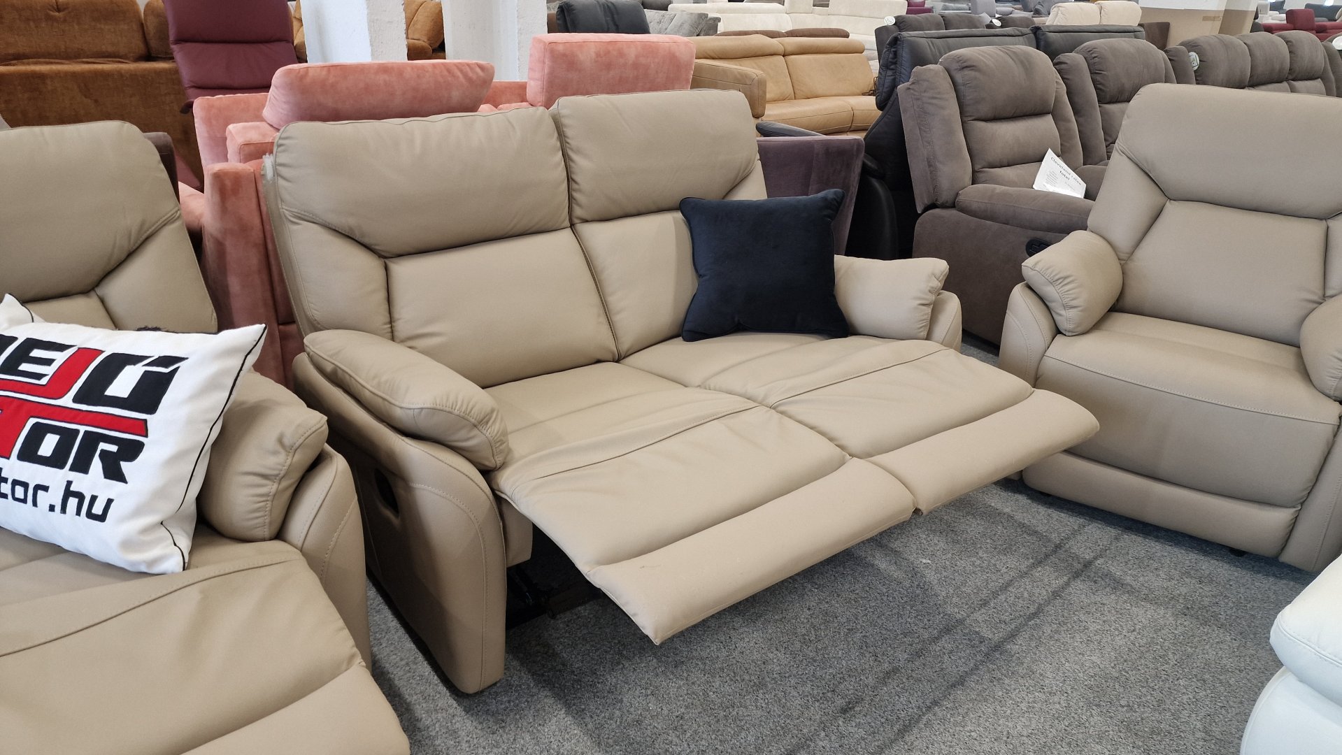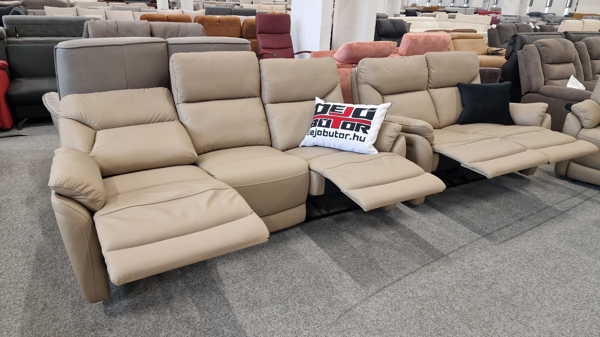 Valódi bőr (hátul és oldalt alul textilbőr) ülőgarnitúra 5 db TV relax funkcióval, CAPPUCINO, HALVÁNY SZÜRKE, VILÁGOS BEIGE színben. Extra kényelmes, SZUPERPUHA KANAPÉ!