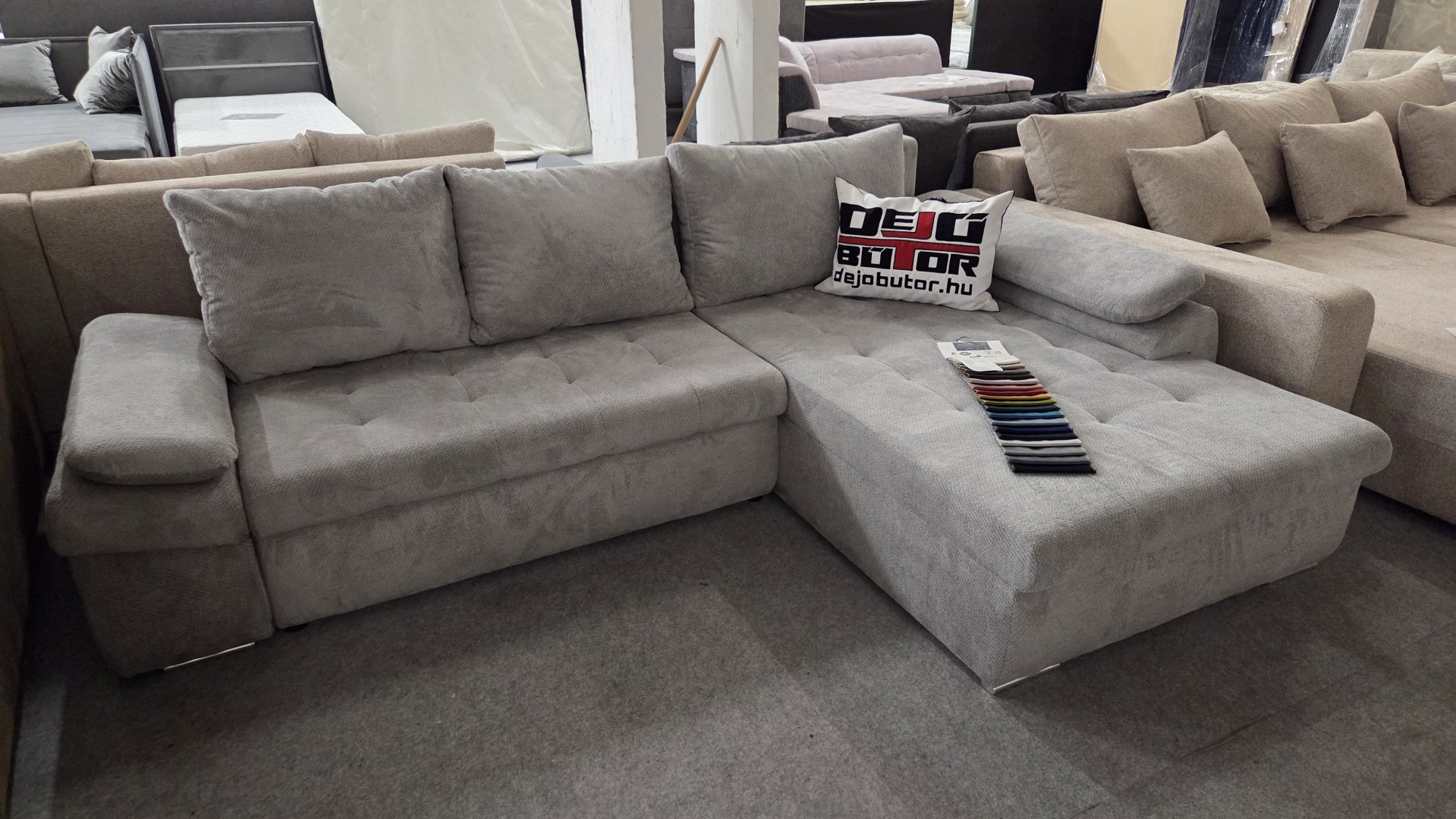 Kedvező árú divatos sarokkanapé szivacsos kivitel, magyar termék. Nagyon sok színben és anyaggal megrendelhető de mindig van raktáron is.