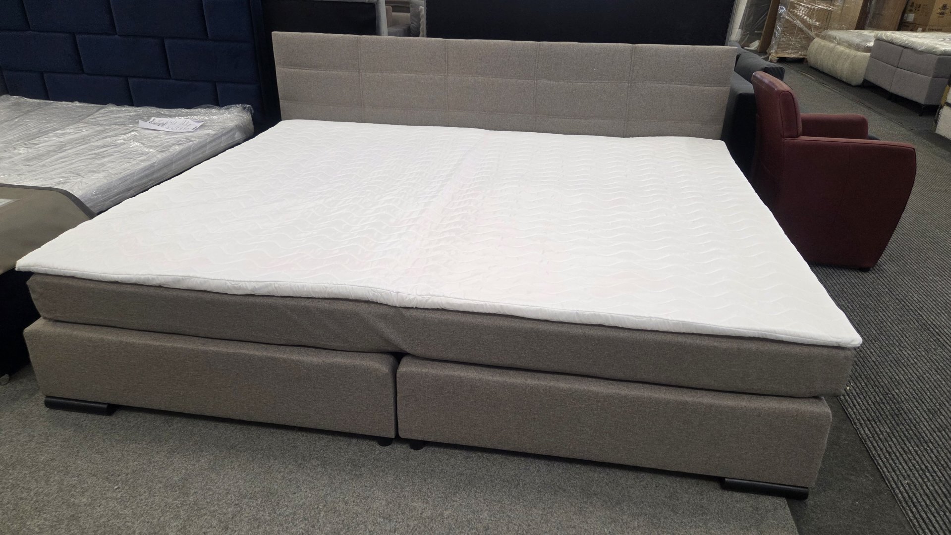 HATAMAS CSALÁDI ÁGY, 240CM SZÉLES FEKVŐFELÜLETTEL!Közeppes keménységű, hideghab matrac + fekdőmatracos boxspring ágy.