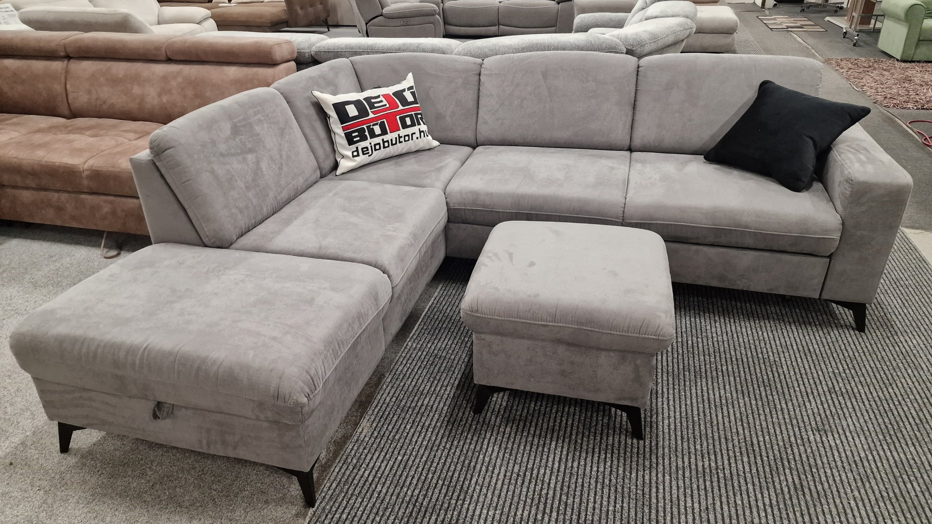 Német akciós kanapé, a kiállított modell vásárolható meg. Ágyazható, ágyneműtartós. Kiváló minőségű német bútor, síkrugós kivitellel.