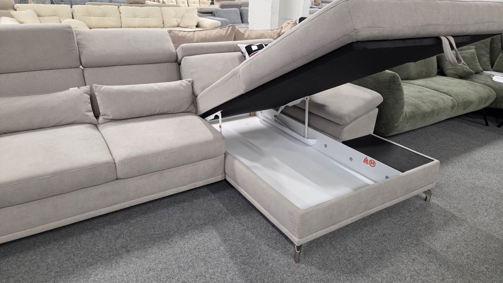 Nagyon kényelmes sarokkanapé, állítható ülésmélységgel, állítható fejtámlákkal.