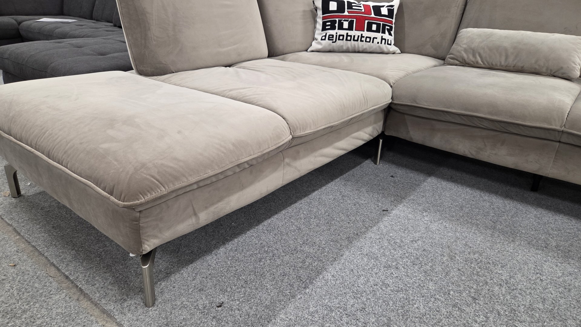 Kitűnő minőségű német bútor, raktárról azonnal elvihető. Német akciós bútorainkból minding csak egy darab van, a képen látható termék vásárolható meg. Nagyon kényelmes kanapé, puha ülést ad, állítható hátámlákkal és exclusive bársony szövettel.